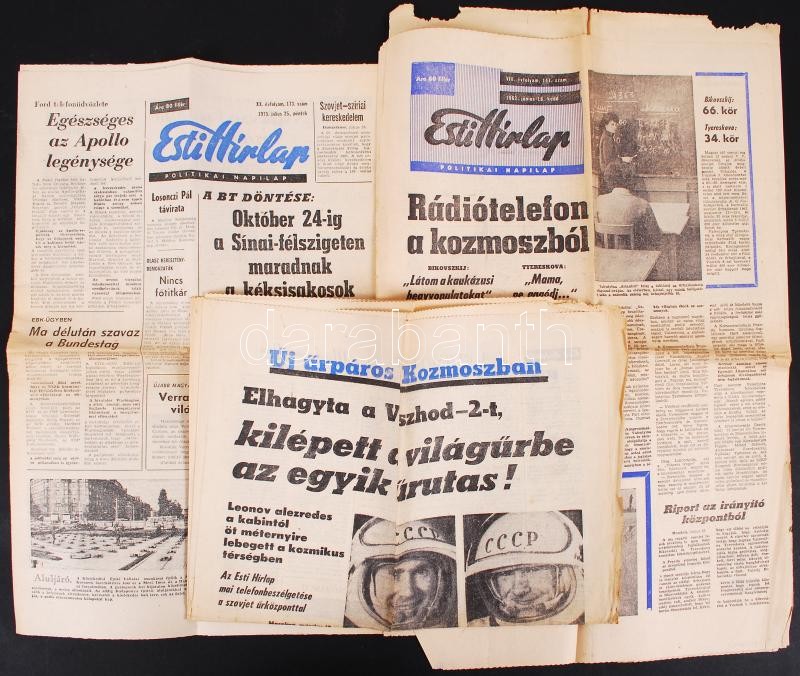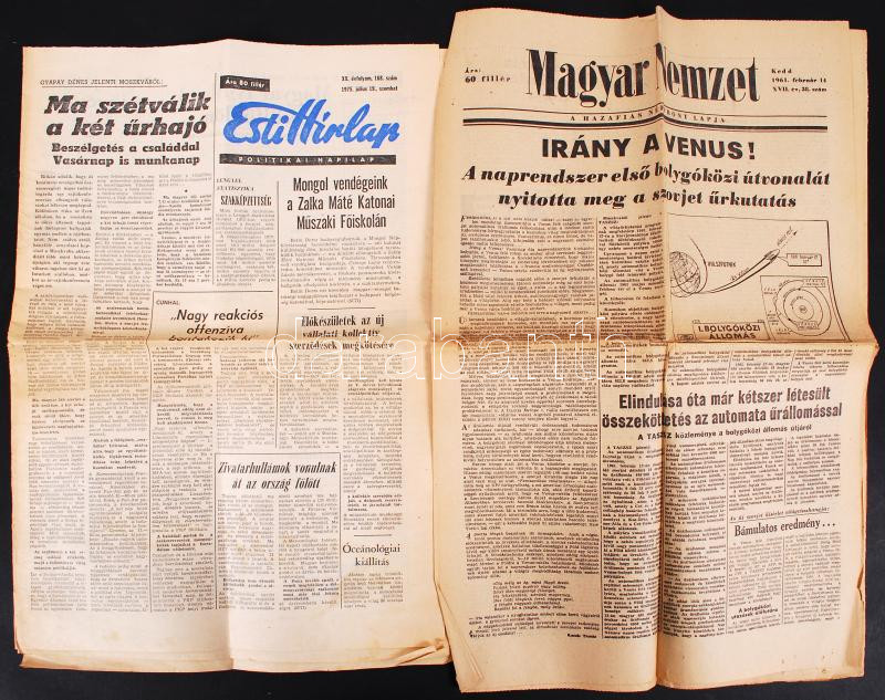 Leírás: 1960-1962 5 db magyar napilap kiadása az űrkutatással a foglalkozó központi cikkekkel