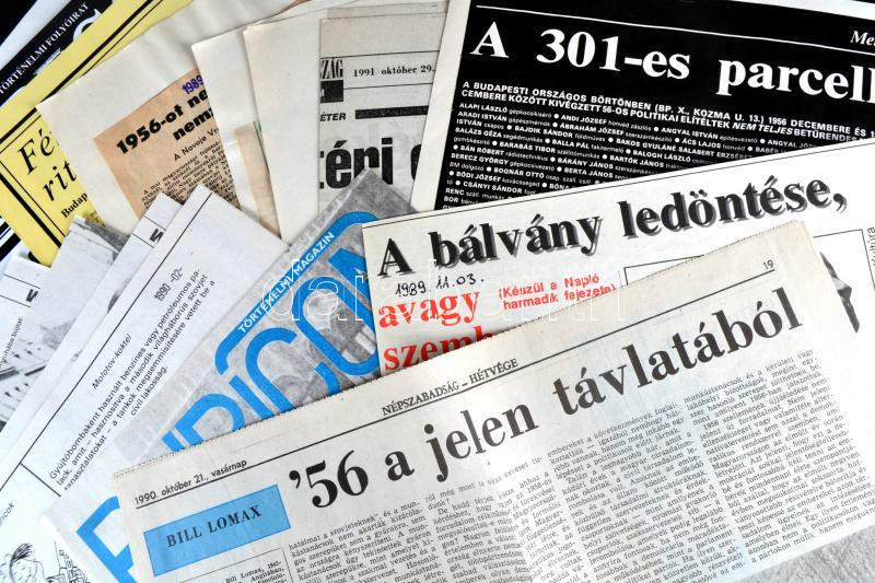 Leírás: cca 1990 30db újság és újságkivágás az 1956-os forradalomról