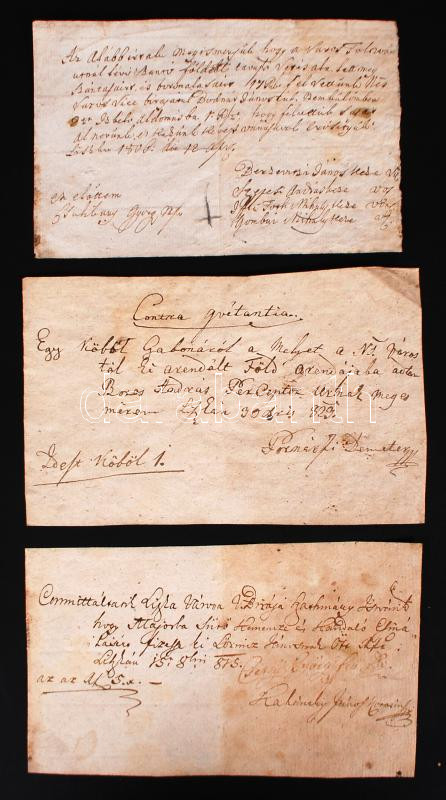 Leírás: cca 1820 Olaszliszka környéki földbirtokosok által aláírt 3 db magyar nyelvű nyugta