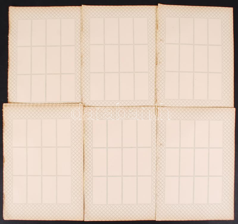 Leírás: 1909 Képes magyar bélyegek 19 darab korabeli üres albumlap gyűjtési bélyegekhez