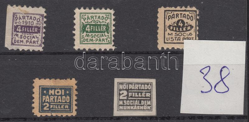 Leírás: 1910 Magyar Szoc. Dem. Párt férfi és női pártadó bélyeg, összesen 5 db