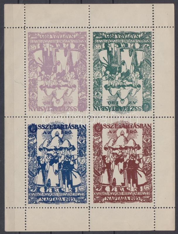 Leírás: 1915 Központi Hitelszövetkezet fogazott levélzáró kisív, a kék és a zöld szín gépszínátnyomatával