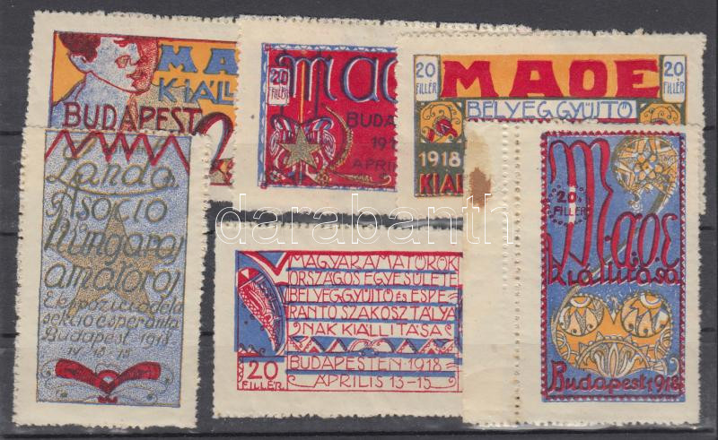 Leírás: 1918 MAOE Bp. kiállítás komplett levélzáró sora