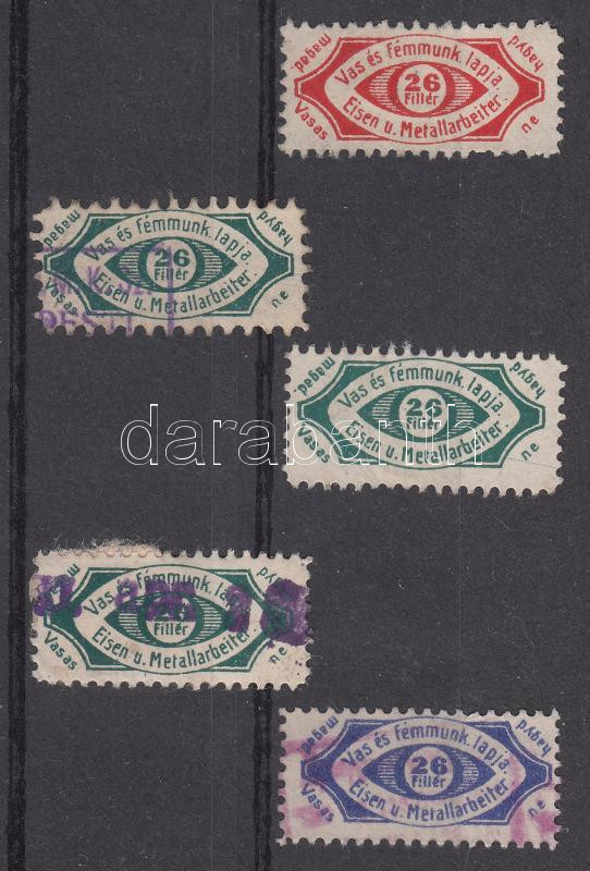 Leírás: Vas- és fémmunkások 5 db segélybélyeg "Vasas ne hagyd magad!"