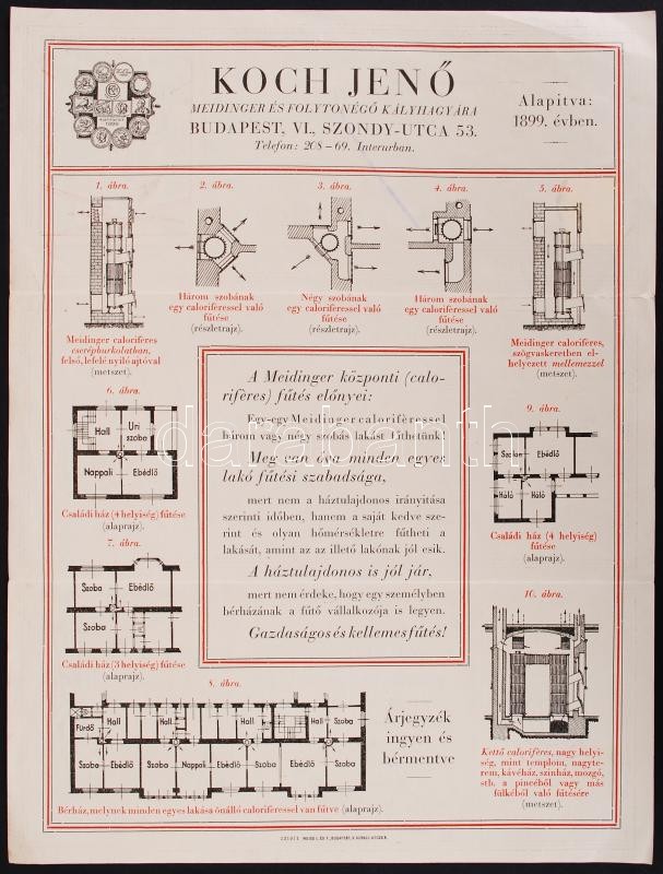 Leírás: 1914 Koch Jenő kályhagyár reklámos levelezőlap nyomtatvány, elküldve