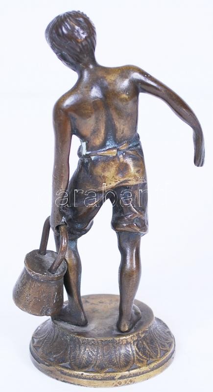 Leírás: Cca 1920, Cipekedő fiú, bronz, jelzés nélkül, m:14 cm / Boy bronze figure