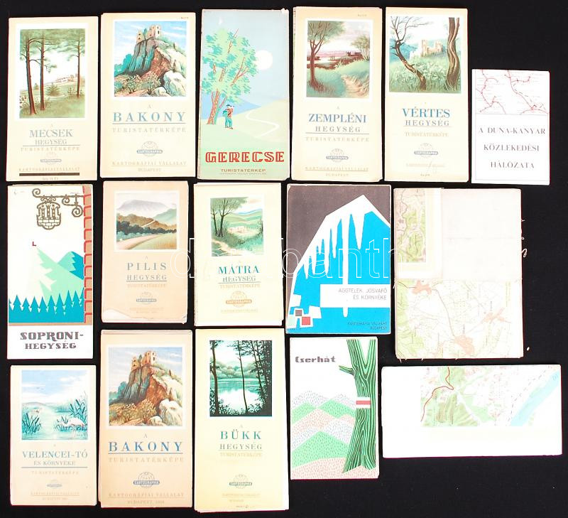 Leírás: cca 1950-1970 16 db vegyes magyar turista térkép