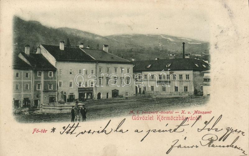 Körmöcbánya, Főtér, pénzverő hivatal / main square, Royal mint https://www.darabanth.com/hu/193-Gyorsarveres/193.0/Kepeslapok/Felvidek~400008/Kormocbanya-Foter-penzvero-hivatal-main-square-Royal-mint~II737790