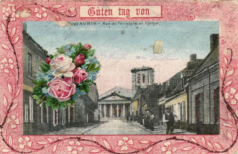 Wavrin Peristyle street and church, floral, pearl decoration, mechanic... https://www.darabanth.com/hu/193-Gyorsarveres/193.0/Kepeslapok/Franciaorszag~800076/Wavrin-Peristyle-street-and-church-floral-pearl-decoration-mechanical-card-gluemark-fa~II671036