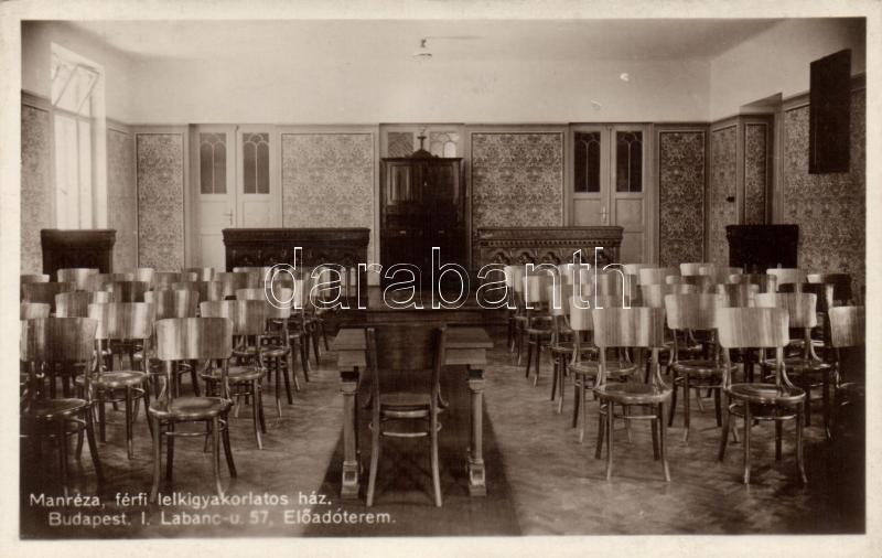 Budapest II. Manréza Lelkigyakorlatos Ház, Labanc út 57., előadóterem https://www.darabanth.com/hu/193-Gyorsarveres/193.0/Kepeslapok/Magyarorszag~400005/Budapest-II-Manreza-Lelkigyakorlatos-Haz-Labanc-ut-57-eloadoterem~II736953