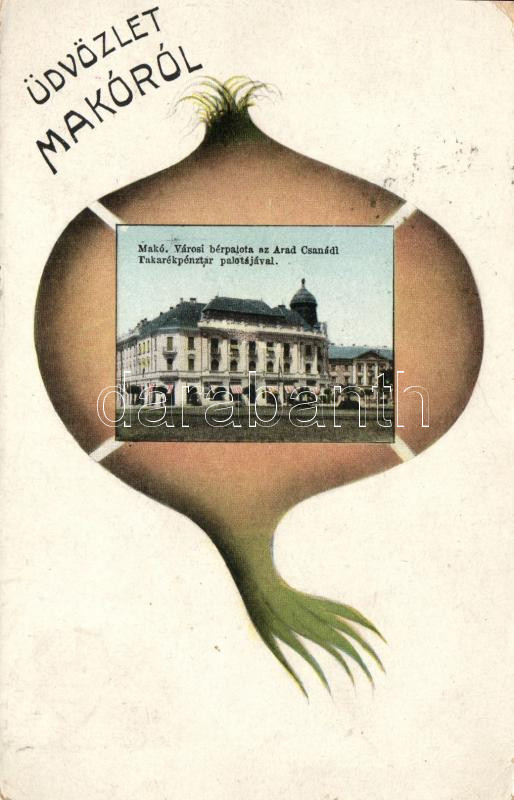 Makó a városi bérpalota az Arad Csanádi Takarékpénztár palotájával, ha... https://www.darabanth.com/hu/193-Gyorsarveres/193.0/Kepeslapok/Magyarorszag~400005/Mako-a-varosi-berpalota-az-Arad-Csanadi-Takarekpenztar-palotajaval-hagyma~II733217