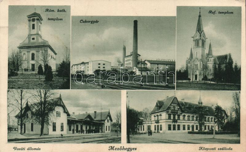 Mezőhegyes, vasútállomás, cukorgyár, központi szálloda (Rb) https://www.darabanth.com/hu/193-Gyorsarveres/193.0/Kepeslapok/Magyarorszag~400005/Mezohegyes-vasutallomas-cukorgyar-kozponti-szalloda-Rb~II733324