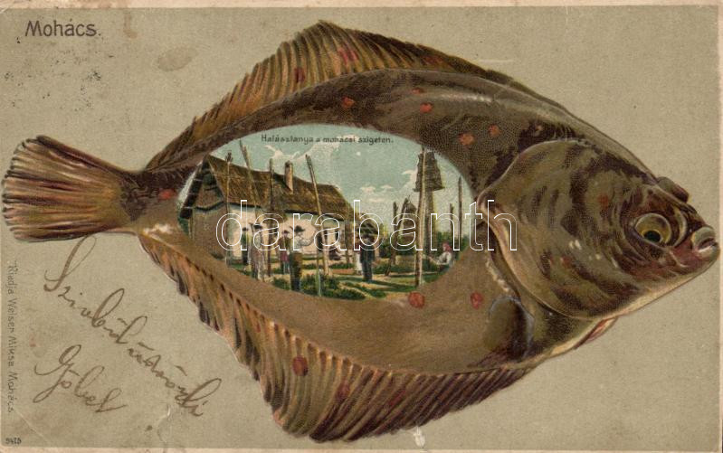 Mohács halásztanya, hal, Emb. litho (b) https://www.darabanth.com/hu/193-Gyorsarveres/193.0/Kepeslapok/Magyarorszag~400005/Mohacs-halasztanya-hal-Emb-litho-b~II732217