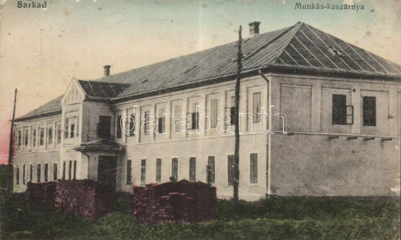 Sarkad, Munkás kaszárnya; Blasz József kiadása (fa) https://www.darabanth.com/hu/193-Gyorsarveres/193.0/Kepeslapok/Magyarorszag~400005/Sarkad-Munkas-kaszarnya-Blasz-Jozsef-kiadasa-fa~II702744