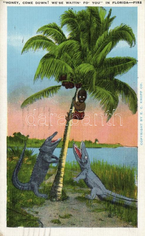 "Honey, come down! We'se waitin' fo' you" Flo... https://www.darabanth.com/hu/193-Gyorsarveres/193.0/Kepeslapok/Neger~800127/Honey-come-down-Wese-waitin-fo-you-Florida-humour~II737656