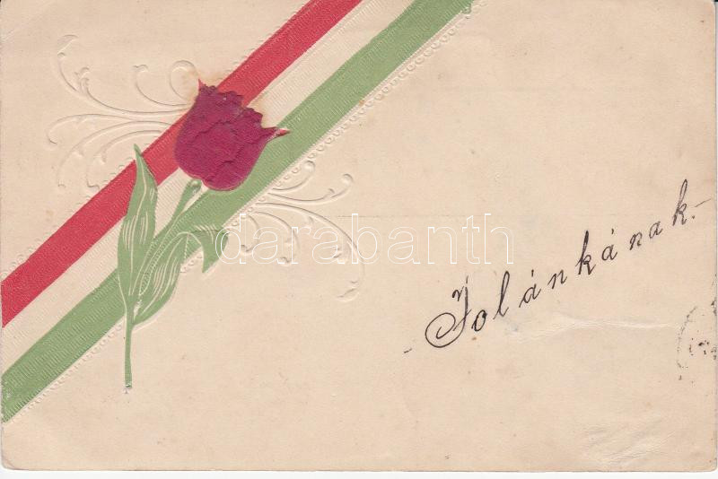 Hungarian patriotic, floral greeting, silk card (Rb) https://www.darabanth.com/hu/193-Gyorsarveres/193.0/Kepeslapok/Udvozlolap~800078/Hungarian-patriotic-floral-greeting-silk-card-Rb~II734673