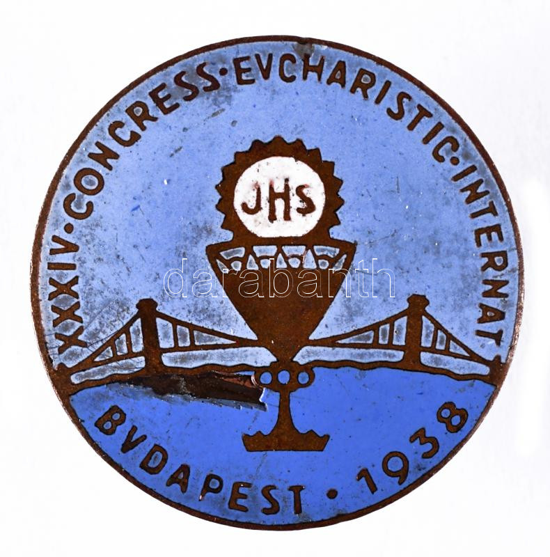 1938. "XXXIV. Eucharisztikus Világkongresszus" Br jelvény (2... https://www.darabanth.com/hu/193-Gyorsarveres/193.0/Numizmatika/Falerisztika-Kituntetesek-jelvenyek~17/1938-XXXIV-Eucharisztikus-Vilagkongresszus-Br-jelveny-2x-egyik-zomancozott-T2~II687952
