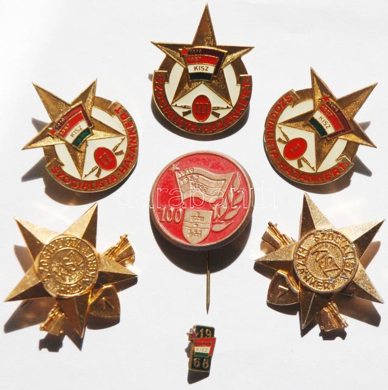 ~1950-60. 7 db különféle KISZ jelvény, közte zománcozottak is T:2,2- https://www.darabanth.com/hu/193-Gyorsarveres/193.0/Numizmatika/Falerisztika-Kituntetesek-jelvenyek~17/7E1950-60-7-db-kulonfele-KISZ-jelveny-kozte-zomancozottak-is-T2-2-~II676892