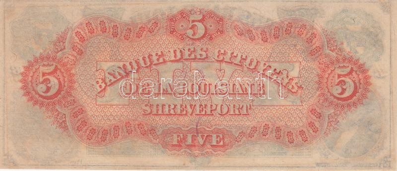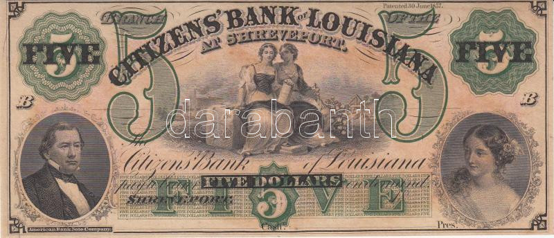 Amerikai Egyesült Államok / Louisiana / Shreveport / Citizens' Bank of Louisiana 1857. 5$ "B" sorozat dátum- és sorszám nélkül T:I(néhol elszíneződés)