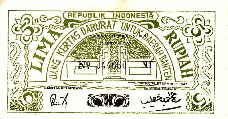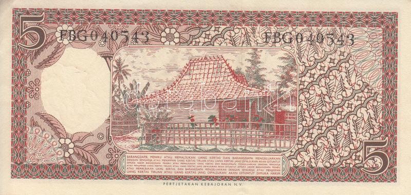 Indonesia 1956. 1 Rupiah (2x) + 2 1/2 Rupiah + 1947. 5 Rupiah + 1958. 5 Rupiah C:UNC-VF