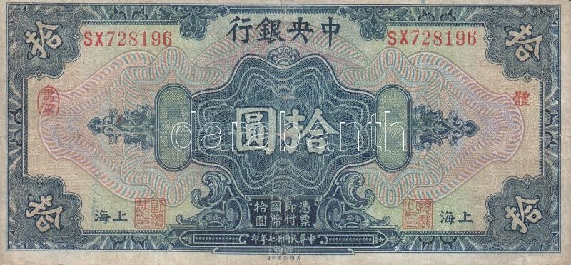 China 1928. 10 Dollars (2x) wit... https://www.darabanth.com/hu/193-Gyorsarveres/193.0/Numizmatika/Kulfoldi-bankjegyek~11/Kina-1928-10USD-belyegzessel-2x-TIII-3Cbr3EChina-1928-10-Dollars-2x-with-stamp-CF~II733099