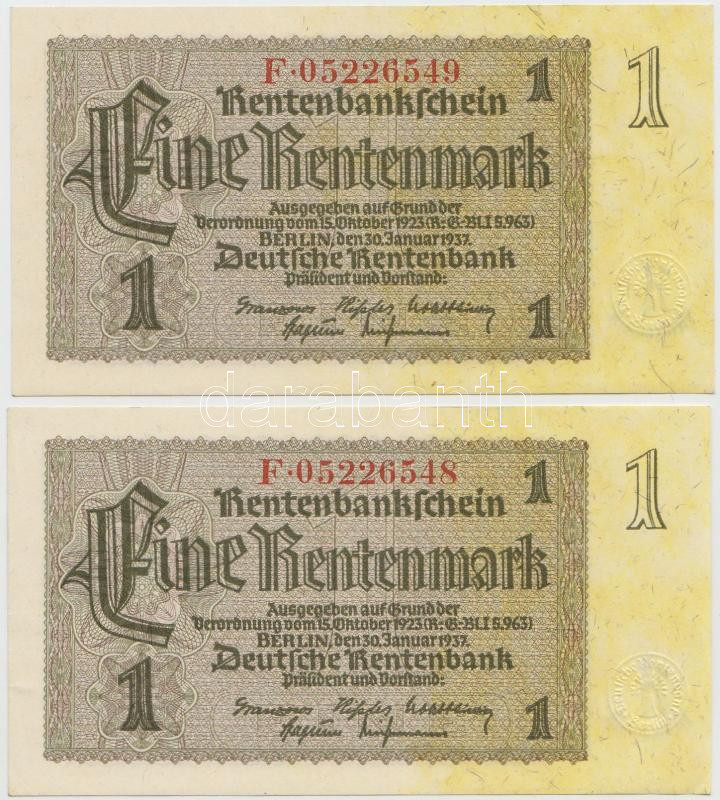 Német 3. Birodalom 1937. 1RM (2x) egymás utáni sorszámmal T:I