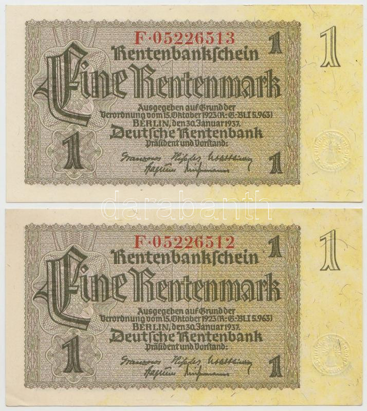 Német 3. Birodalom 1937. 1RM (2x) egymás utáni sorszámmal T:I
