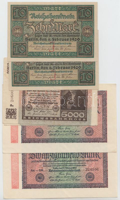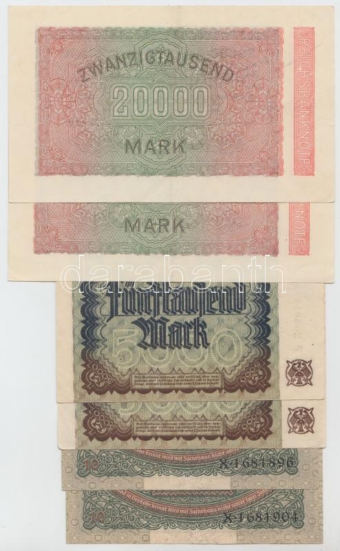 Leírás: Német Birodalom / Weimari Köztársaság 1920. 10M (2x) + 1922. 5000M (2x) + 10.000M (2x) + 1923. 20.000M (2x) T:II