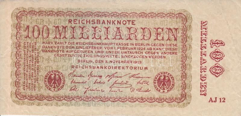 Német Birodalom / Weimari Köztársaság 1923. 100.000.000.000M T:III