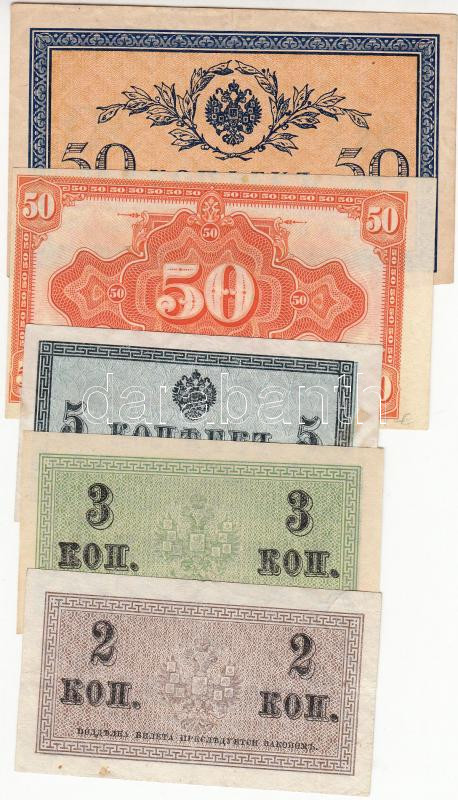 Oroszország 1915. 2k + 3k + 5k + 50k + Orosz Polgárháború / Távol-keleti ideiglenes kormány / Priamur terület 1918-19. 50k T:I-III