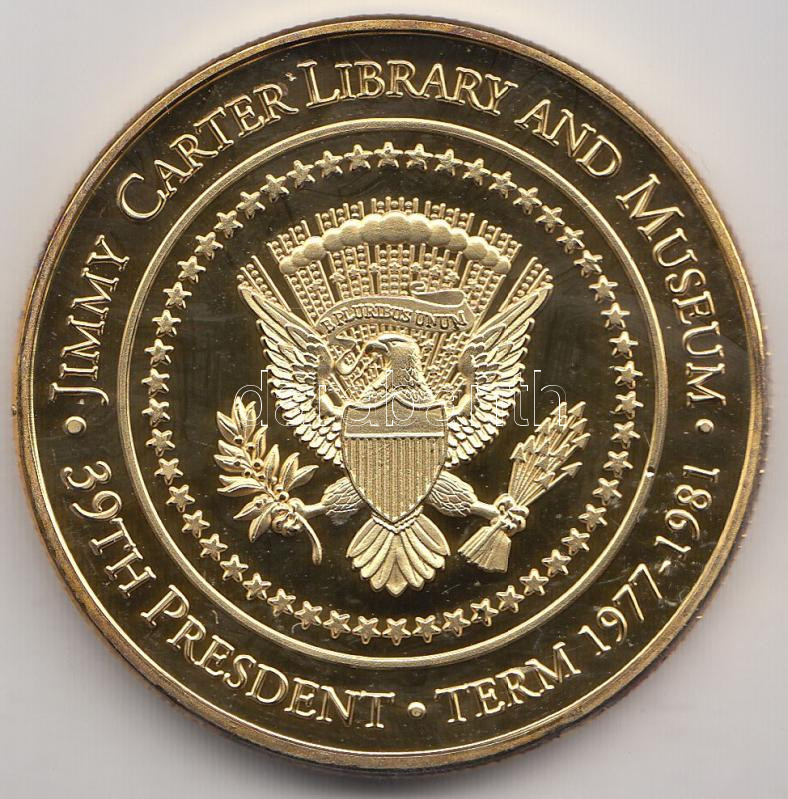 Amerikai Egyesült Államok DN "Jimmy Carter Könyvtár és Múzeum" aranyozott emlékérem (40mm) T:PP