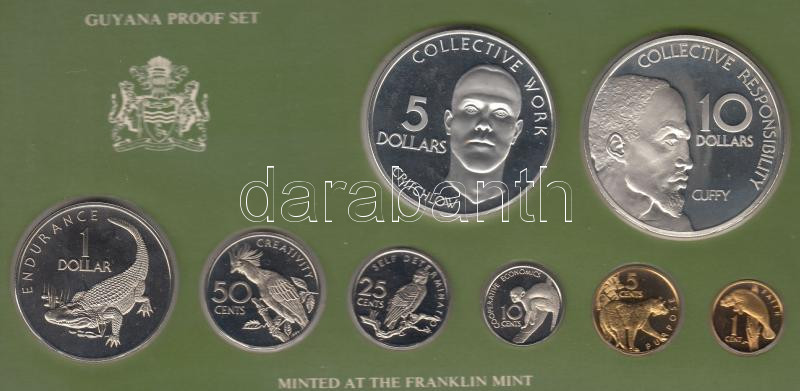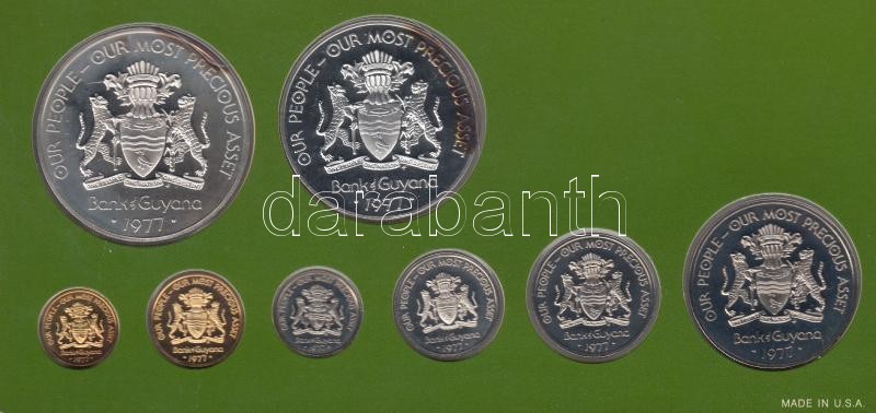 Guyana 1977. 1c - 10$ Ag 8klf érméből álló szett dísztokban tanúsítvánnyal T:PP