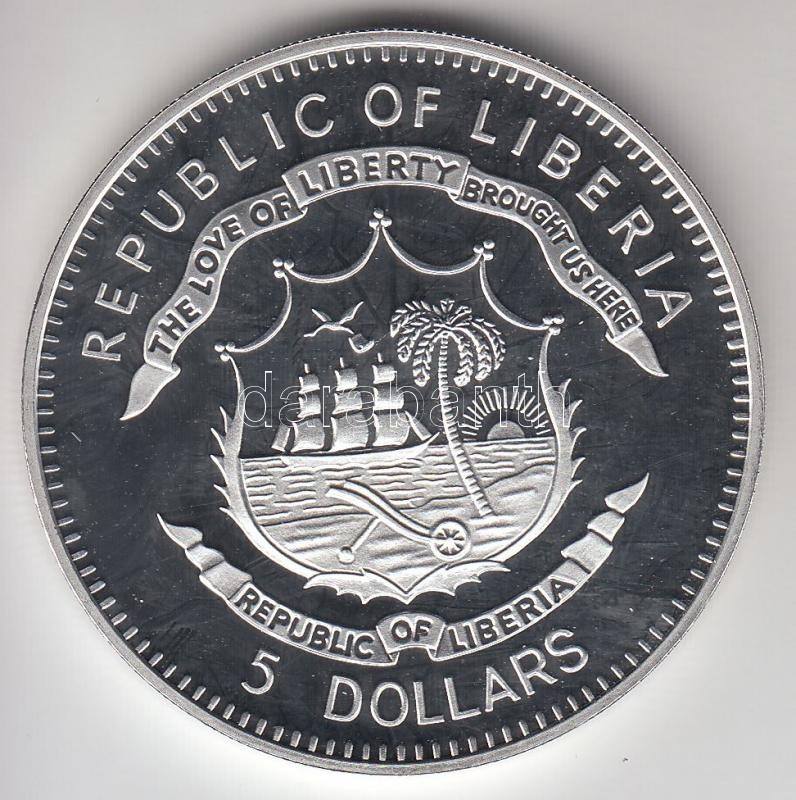 Libéria 2009. 5$ ezüstözött Cu "Nagy Hadvezérek / Atilla a Hunok fejedelme" T:PP Tanúsítvánnyal, csak 2000db!