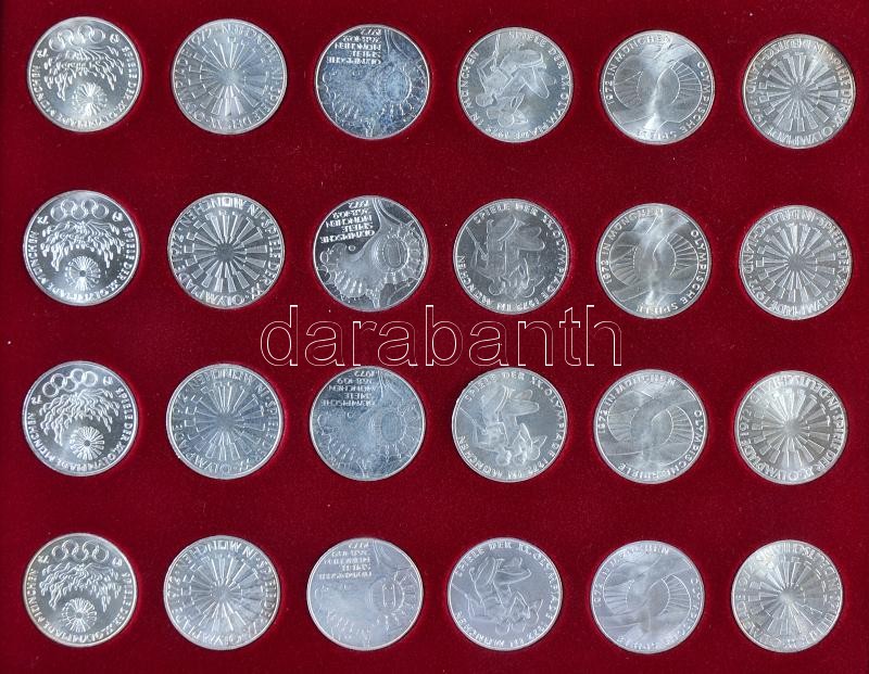 NSZK 1972. 10M Ag 24x klf "Olimpia Münchenben" kiadásban, díszdobozban T:1-2