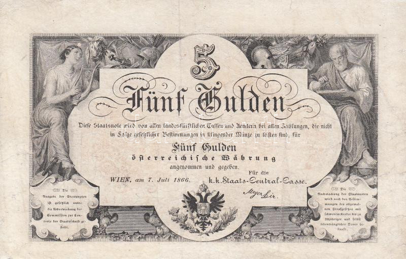 Leírás: 1866. 5G "K.K.Staats-Central-Cassa" T:restaurált, szép állapotban