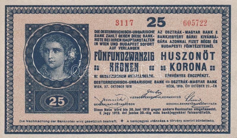 Leírás: 1918. 25K "hullámos" "3117"-es sorozatszám T:I