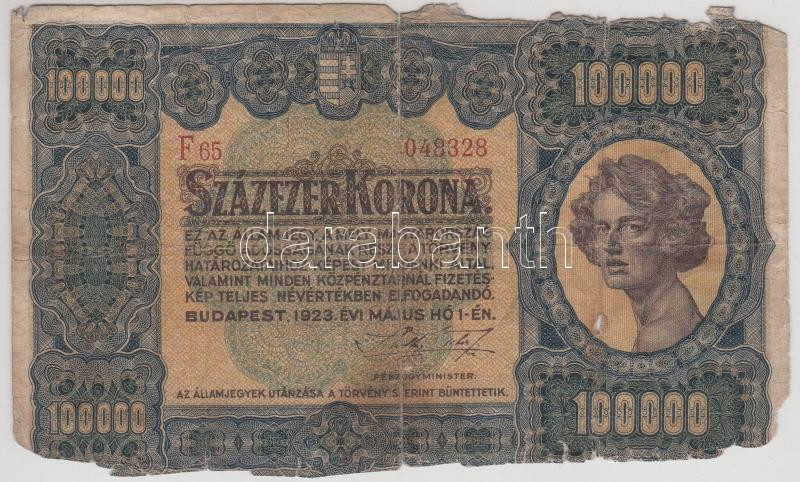 Leírás: 1923. 100.000K T:IV