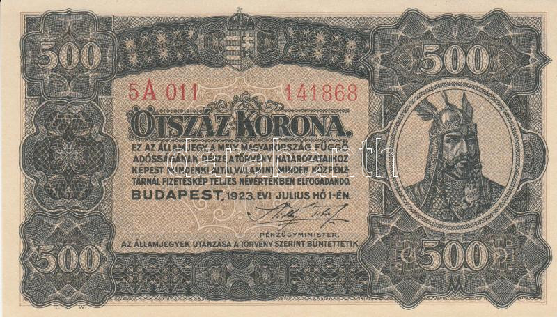 Leírás: 1923. 500K T.W. nyomdahely jelöléssel T:I