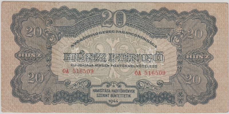 1944. "A Vörös Hadsereg Parancsnoksága" 20P T:III https://www.darabanth.com/hu/193-Gyorsarveres/193.0/Numizmatika/Magyar-bankjegyek~7/1944-A-Voros-Hadsereg-Parancsnoksaga-20P-TIII~II677669