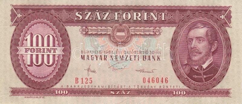 Leírás: 1984. 100Ft (3x) egymás utáni sorszámmal, nyomdai papírránccal T:I
