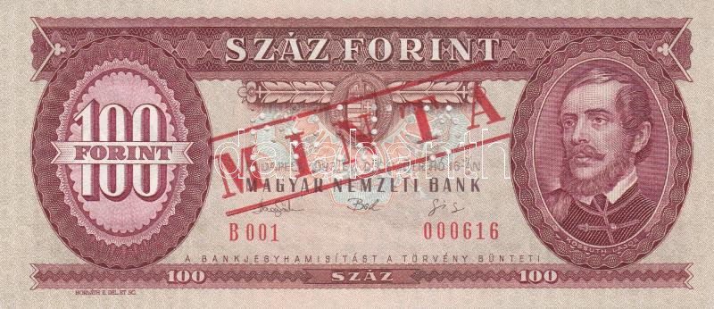 Leírás: 1993. 100Ft "MINTA" perforációval és felülnyomással, "B 001 000616" T:I