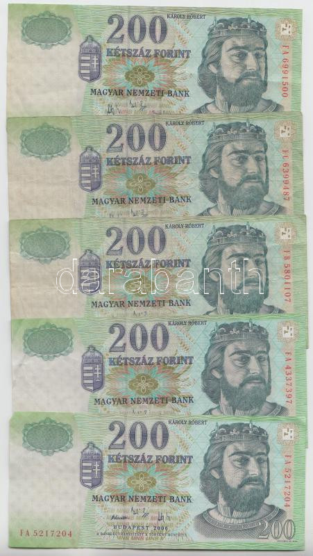 2006-2007. 200Ft "Károly Róbert" (5x) T:III https://www.darabanth.com/hu/193-Gyorsarveres/193.0/Numizmatika/Magyar-bankjegyek~7/2006-2007-200Ft-Karoly-Robert-5x-TIII~II732731