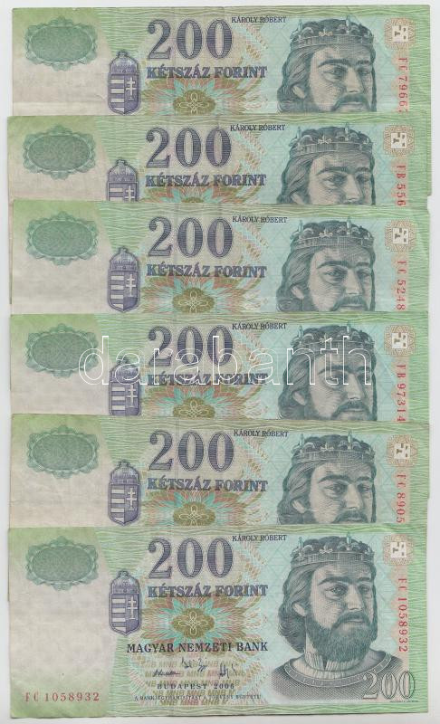 2006-2007. 200Ft "Károly Róbert" (6x) T:III https://www.darabanth.com/hu/193-Gyorsarveres/193.0/Numizmatika/Magyar-bankjegyek~7/2006-2007-200Ft-Karoly-Robert-6x-TIII~II732729