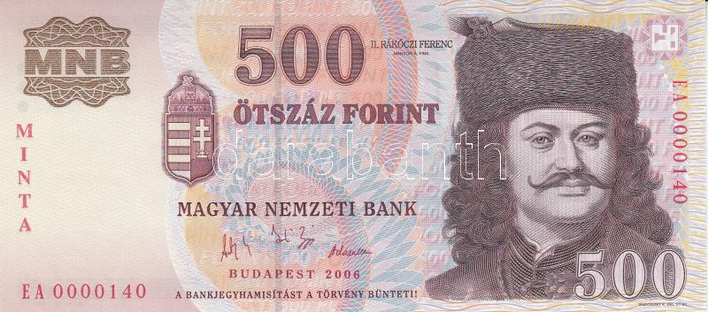 Leírás: 2006. 500Ft "MINTA" felülnyomással "EA 0000140" T:I
