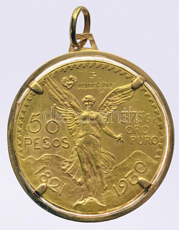 Mexikó 1930. 50P Au "Függetlenség" jelzett arany foglalatban! (Br.: 46.53g) T:2 gravírozással