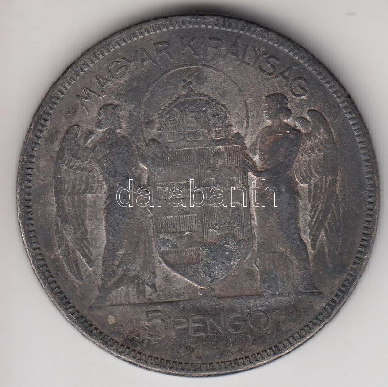 Leírás: 1930. 5P Ag "Horthy-jobbra" T:3