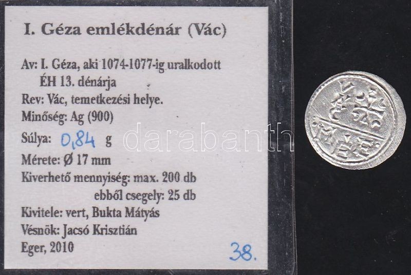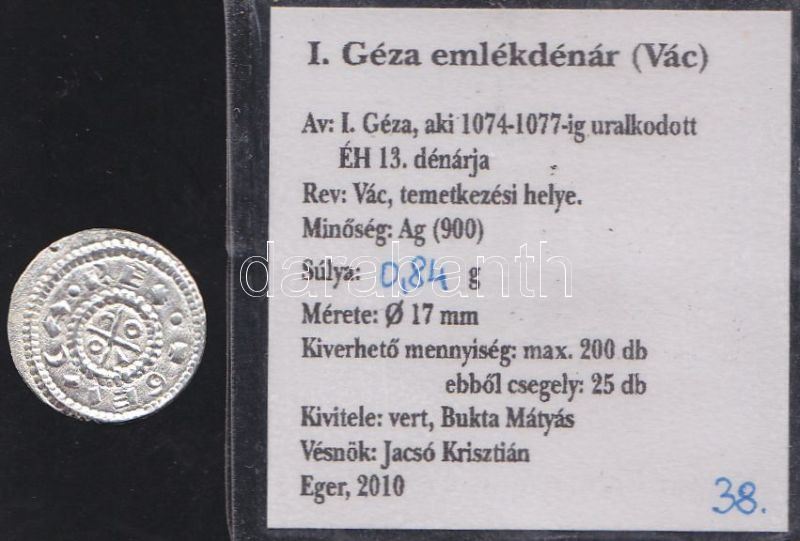 Leírás: I.Géza 1074-1077. Denár Ag MÉE-váci (ÉH-13.) kiadás T:1 RRR! Csak 200db volt verhető! 38. számú tanúsítvánnyal.