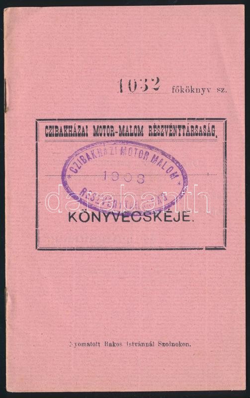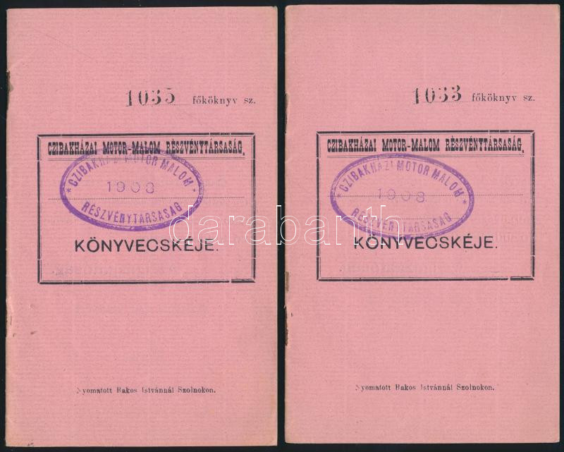 1911. "Czibakházai Motor-Malom Részvénytársaság Könyvecskéje"... https://www.darabanth.com/hu/193-Gyorsarveres/193.0/Numizmatika/Numizmatikaval-kapcsolatos-egyeb-tetelek~21/1911-Czibakhazai-Motor-Malom-Reszvenytarsasag-Konyvecskeje-3x-TI-II-~II657328