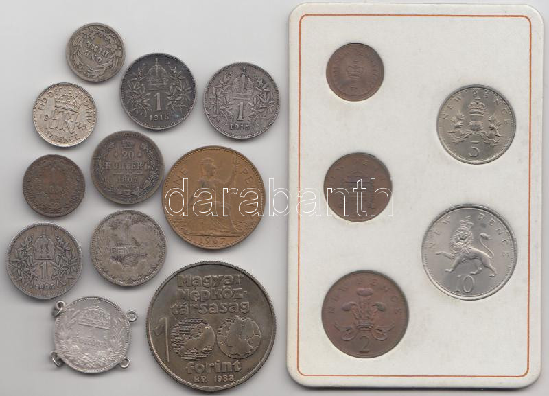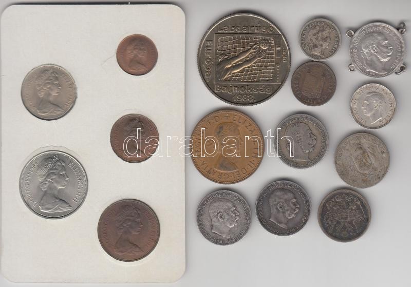 Leírás: 16db-os vegyes magyar és külföldi ezüst és fémpénz tétel T:vegyes