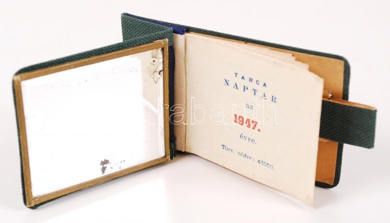 Leírás: 1947 Csekő étterem tárcanaptár, benne tükörrel